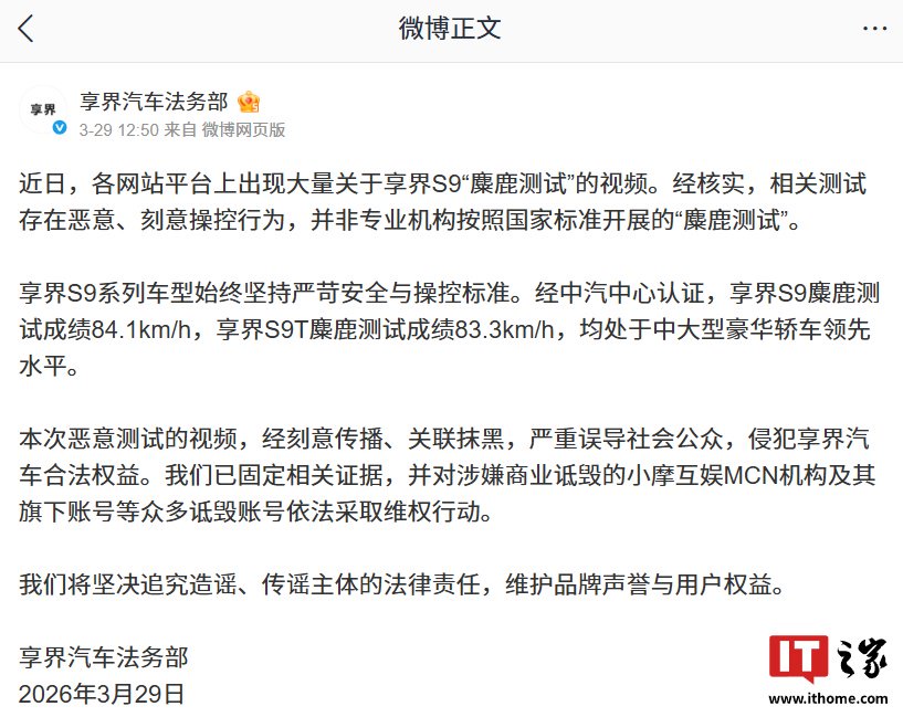 华为余承东首次回应享界 S9 麋鹿测试黑幕,称轮胎被放气、拧松